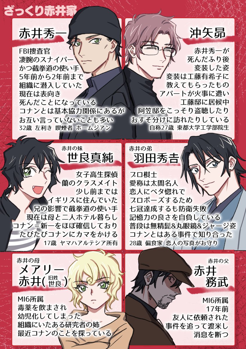 サビオ S Tweet 普段映画くらいしかコナンを見ない両親のために作った資料なんですが 最近のコナン見てない 赤井ファミリーって何 みたいな人に役立てばと思って共有 文字が多いのと ネタバレを含む可能性があるので注意 ミスがあったらごめんなさい